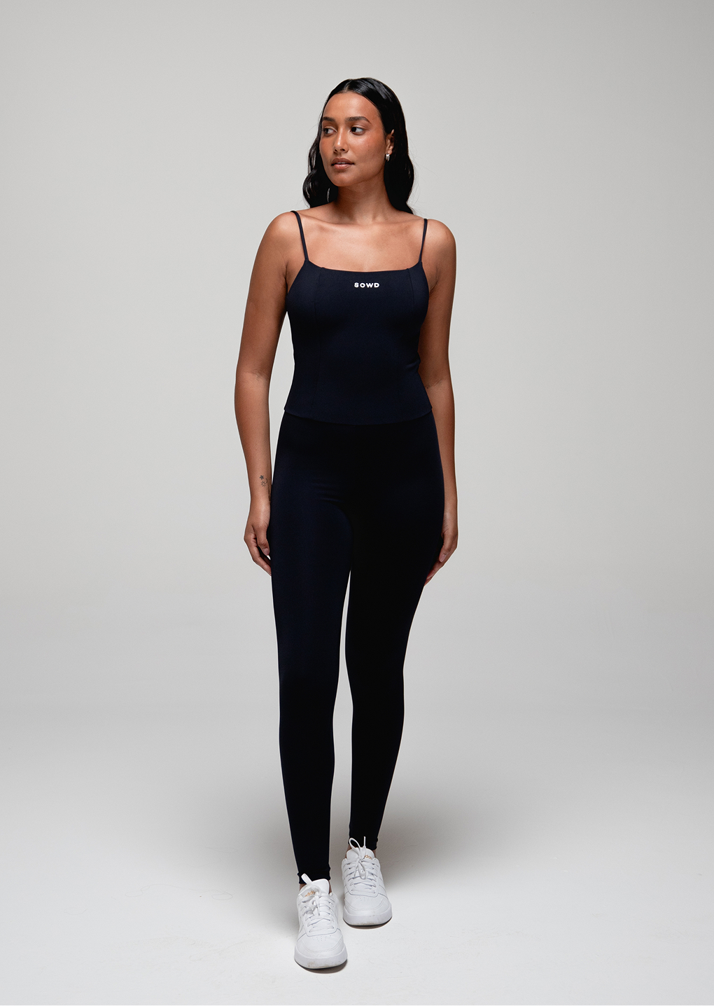 O tecido de toque encorpado garante compressão equilibrada e alta cobertura, ajudando a não marcar, com zero transparência mesmo em movimento.